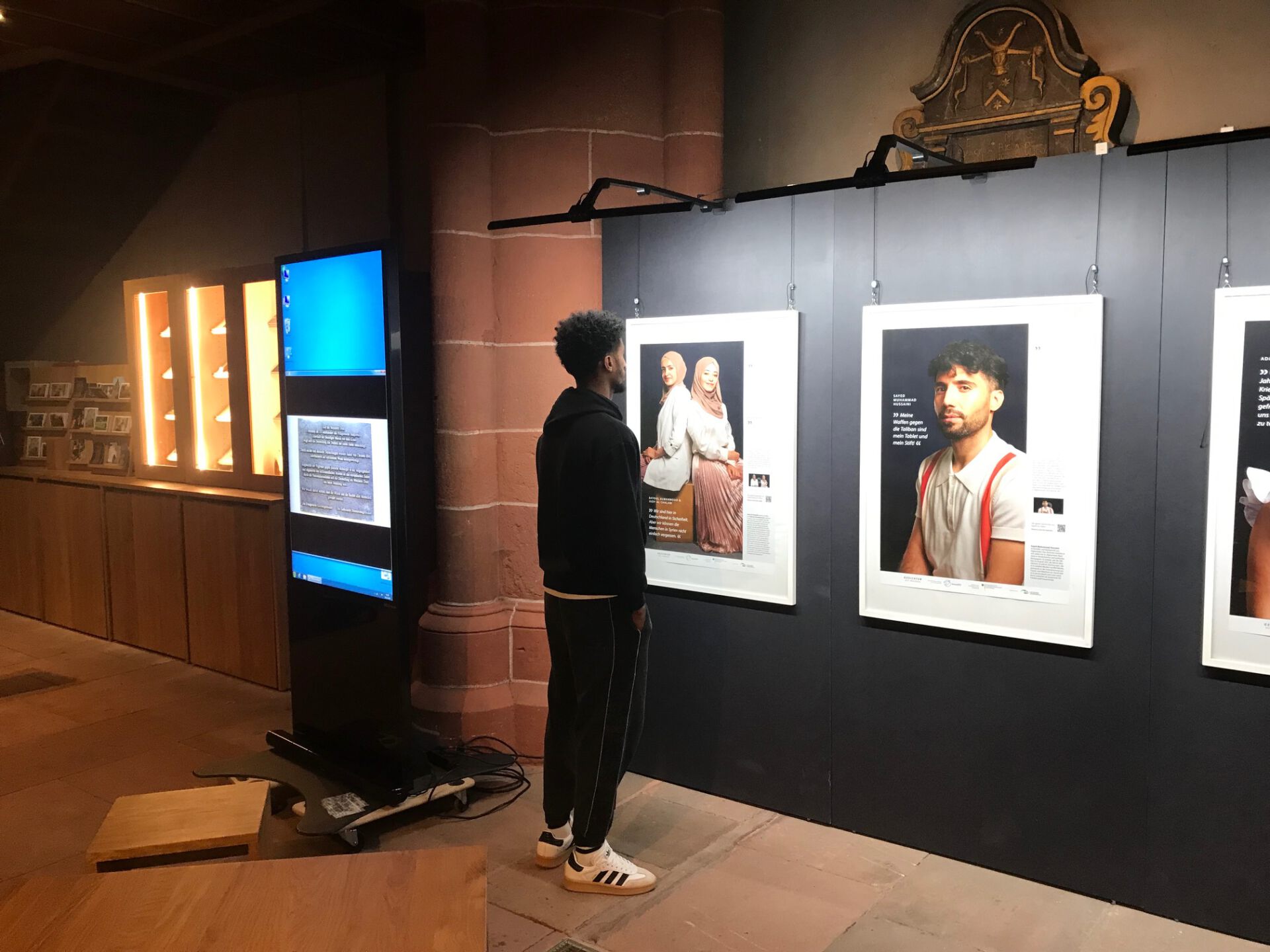 Ein besonderer Blickfang ist ein großer Spiegel im Ausstellungsraum: Er lädt die Besucher*innen ein, das eigene Gesicht zu betrachten – und sich zu fragen: Was ist mein Beitrag zum Frieden?