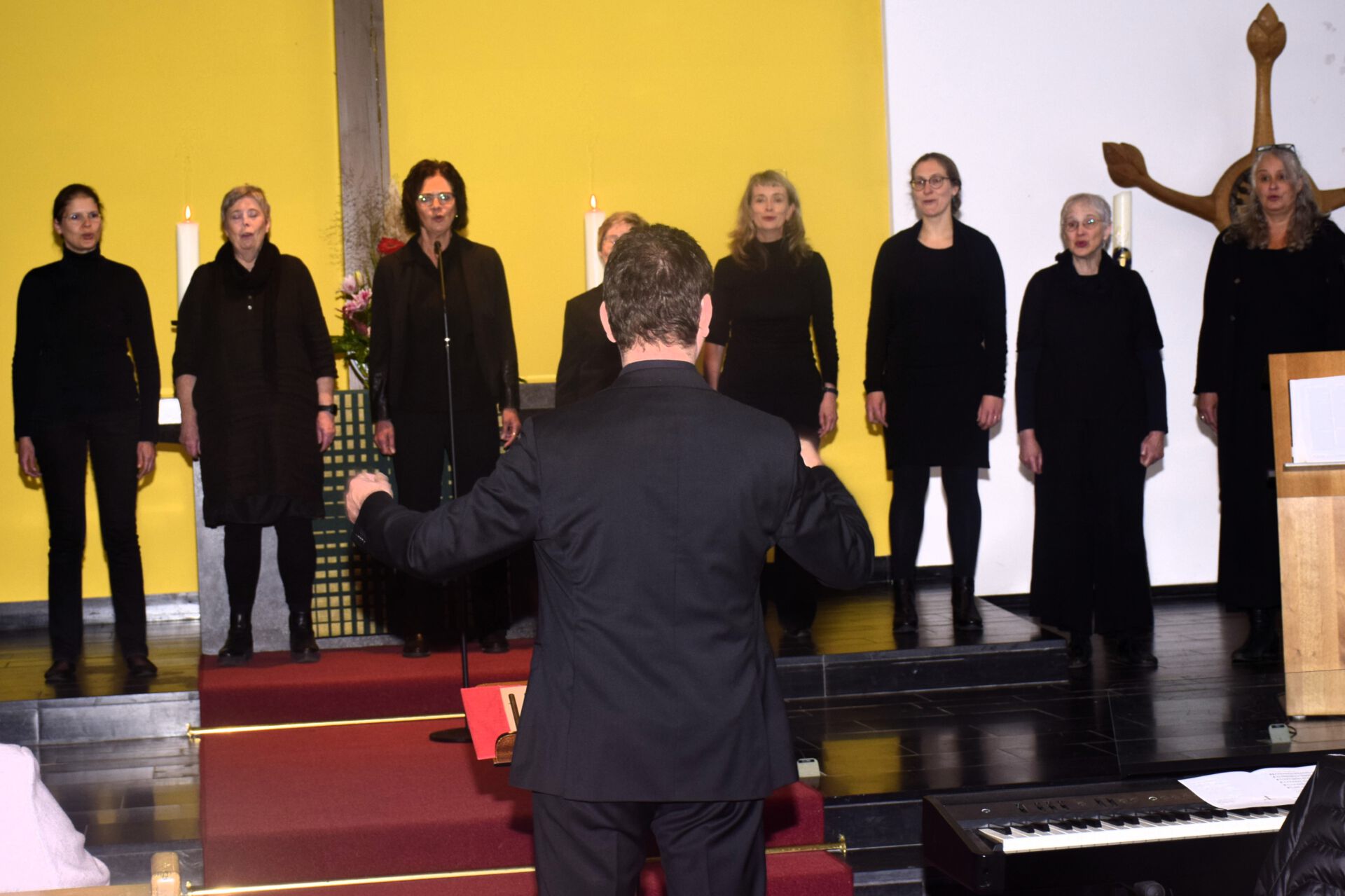 Musikalisch gestalteten Kreiskantor Dietrich Bräutigam und der Frauenchor „Reine Frauensache“ den Gottesdienst. Mit klaren, leuchtenden Stimmen erfüllten die Sängerinnen den Raum und setzten mit Laura Sheils „Jubilate Deo“ am Schluss einen strahlenden musikalischen Akzent.