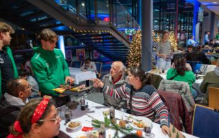 Gäste speisen im Foyer der Buderus Arena beim Weihnachtsessen