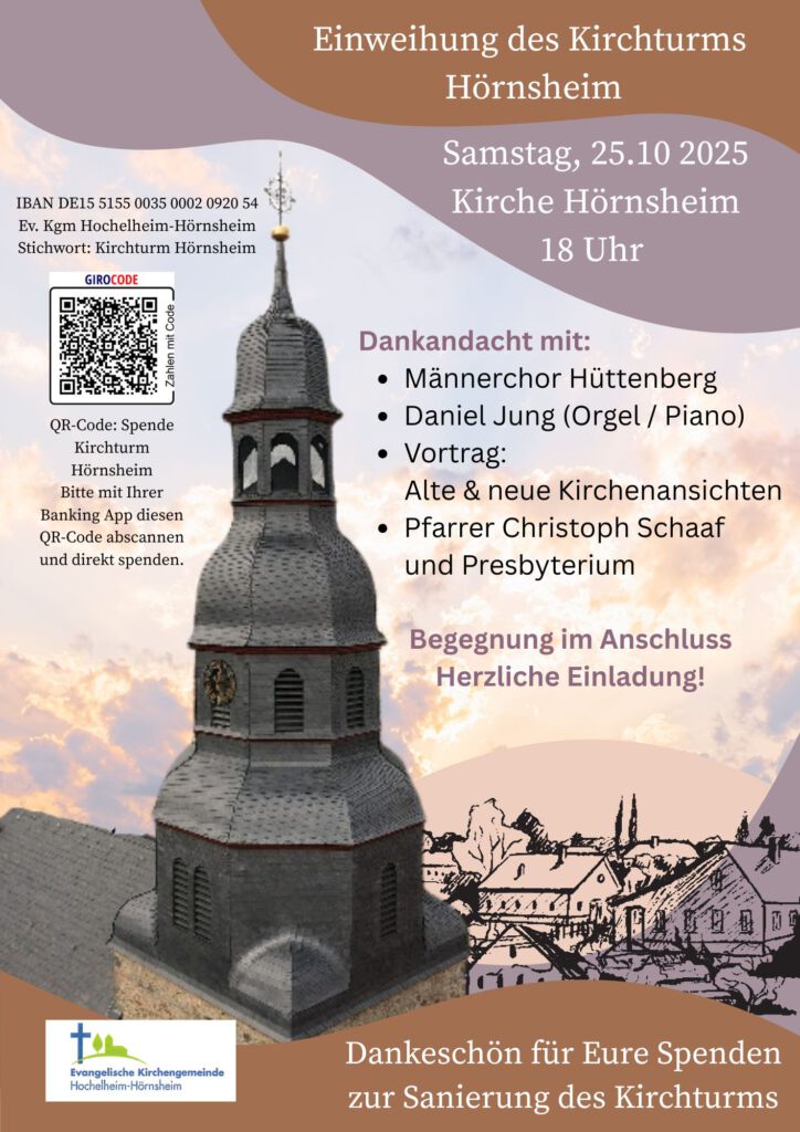 Nach intensiver Sanierung erstrahlt der Hörnsheimer Kirchturm in neuem Glanz – das feiert die Evangelische Kirchengemeinde Hochelheim-Hörnsheim mit einer festlichen Dankandacht.